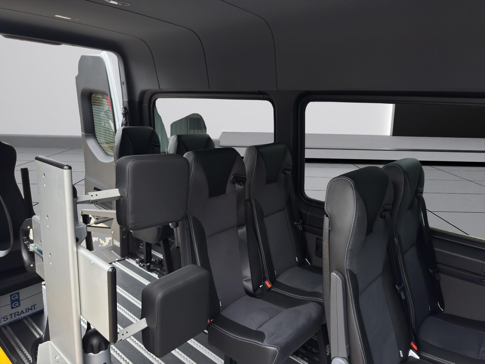 E sprinter TPRM , avec passerelle automatique à l'arrière pour permettre à des personnes en chaise roulante de pouvoir monter a l'intérieur. Equipé de dispositifs complets et homologués pour pouvoir attacher et transporter des personnes en chaises roulantes.